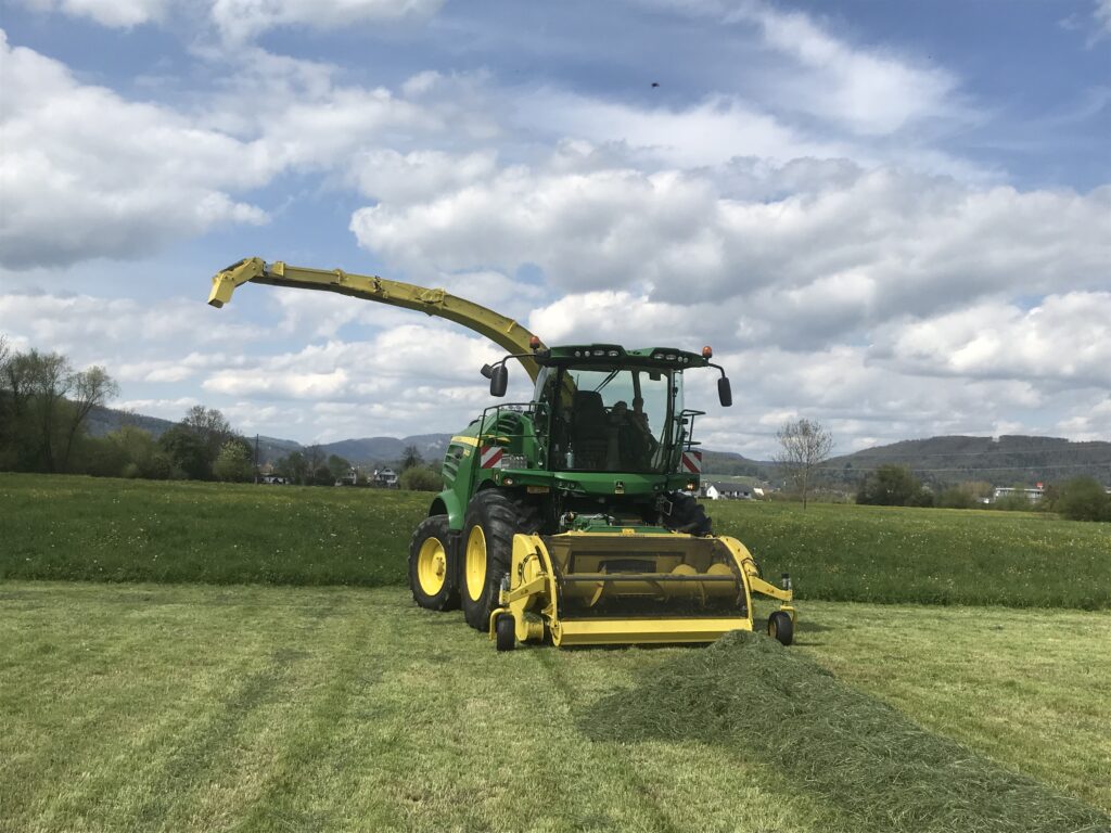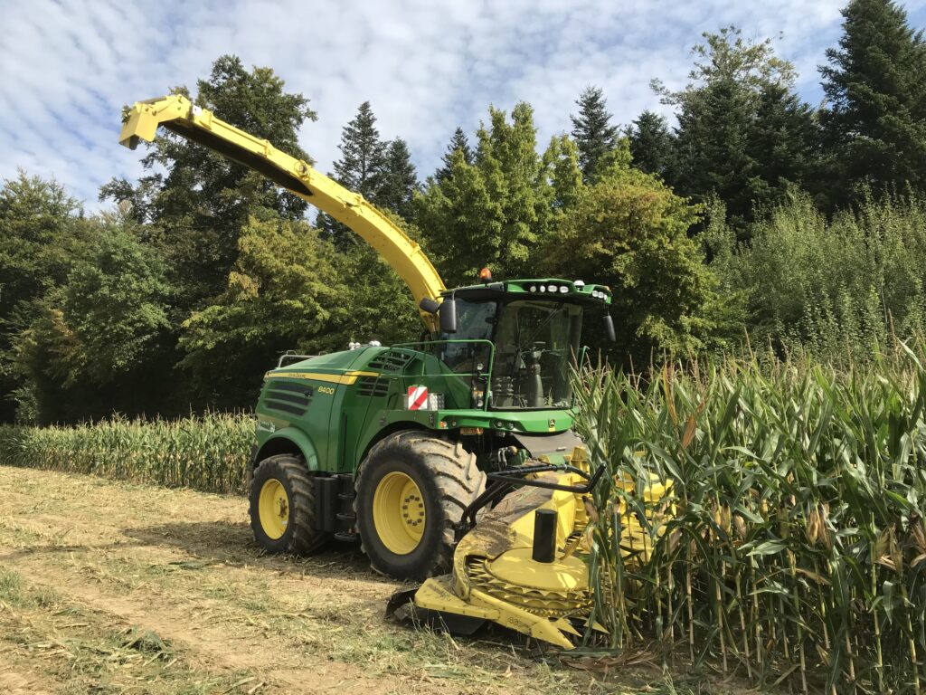 Durch die Möglichkeit von Front- und Heckablad sind wir in der Lage, sowohl Hochsilo, Fahrsilo und Maispresse zu befüllen.