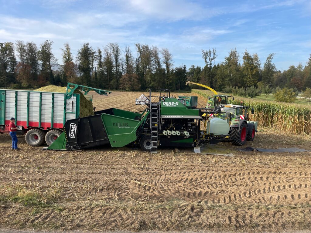 Mais, Häckselgras und GPS in Ballen gepresst, hierbei werden wir von einem externen Partner unterstützt.